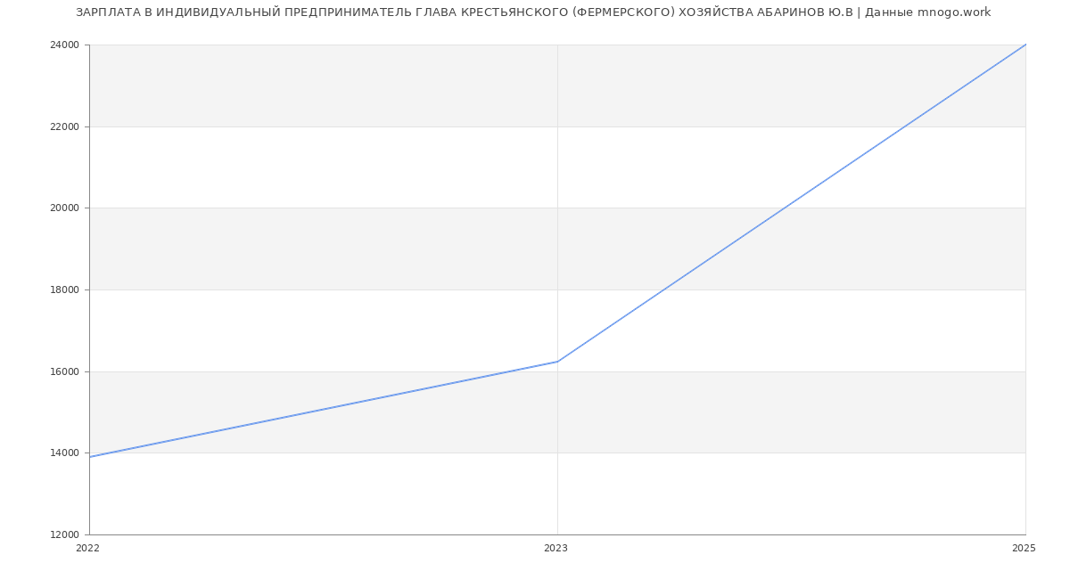 Средняя зарплата в ИНДИВИДУАЛЬНЫЙ ПРЕДПРИНИМАТЕЛЬ ГЛАВА КРЕСТЬЯНСКОГО (ФЕРМЕРСКОГО) ХОЗЯЙСТВА АБАРИНОВ Ю.В в 2025 году составляет 24 000 руб. Это данные из вакансий за год. Это на 71 % меньше средней зарплаты по России (по версии Росстата)