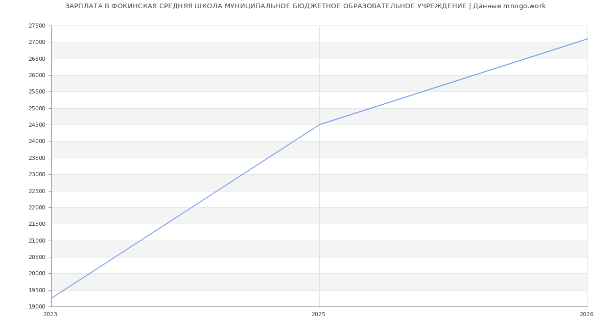 Средняя зарплата в Фокинская средняя школа Муниципальное бюджетное образовательное учреждение в 2026 году составляет 27 093 руб. Это данные из вакансий за год. Это на 68 % меньше средней зарплаты по России (по версии Росстата)