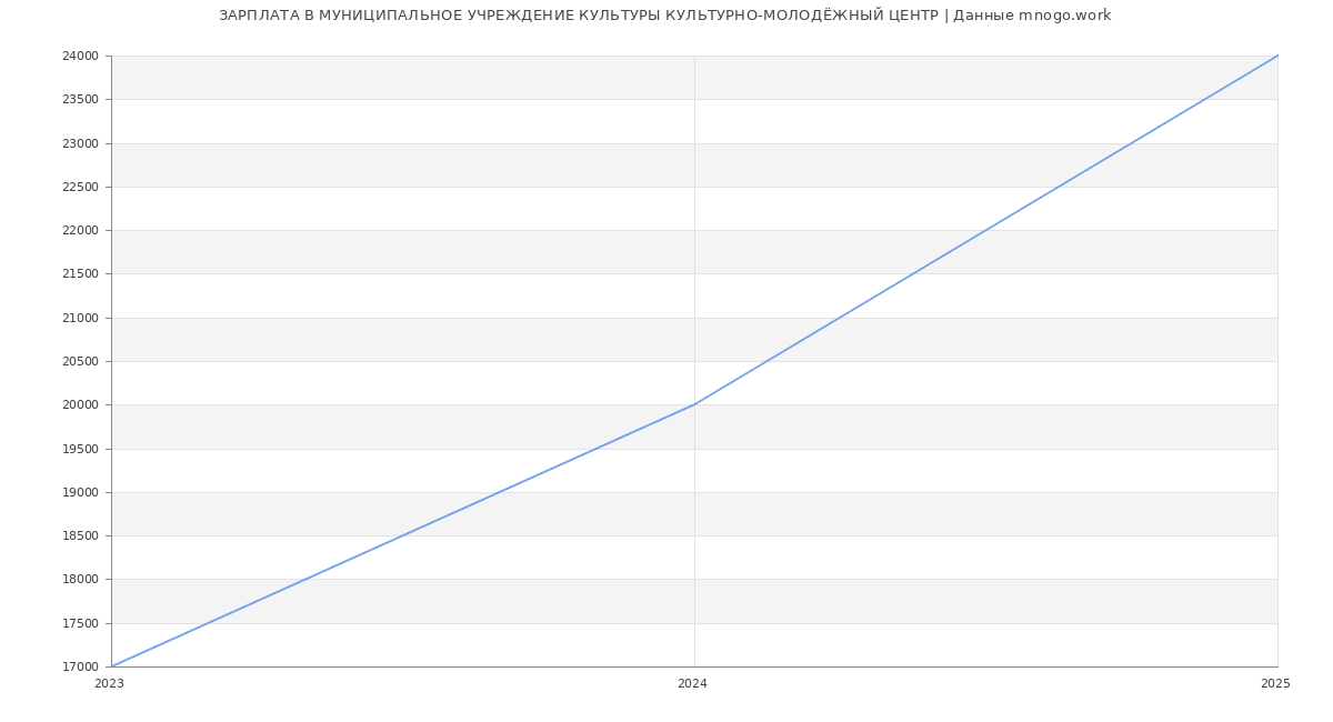 Средняя зарплата в Муниципальное учреждение культуры "Культурно-Молодёжный Центр" в 2025 году составляет 24 000 руб. Это данные из вакансий за год. Это на 71 % меньше средней зарплаты по России (по версии Росстата)