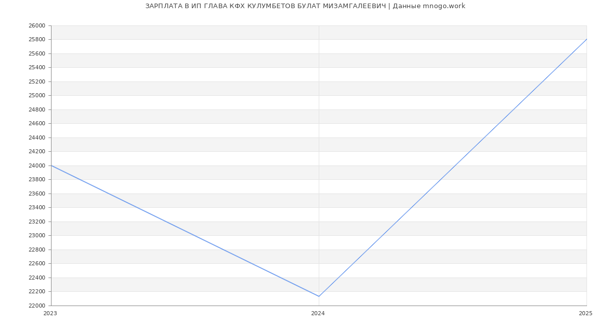 Средняя зарплата в ИП глава КФХ Кулумбетов Булат Мизамгалеевич в 2025 году составляет 25 806 руб. Это данные из вакансий за год. Это на 69 % меньше средней зарплаты по России (по версии Росстата)