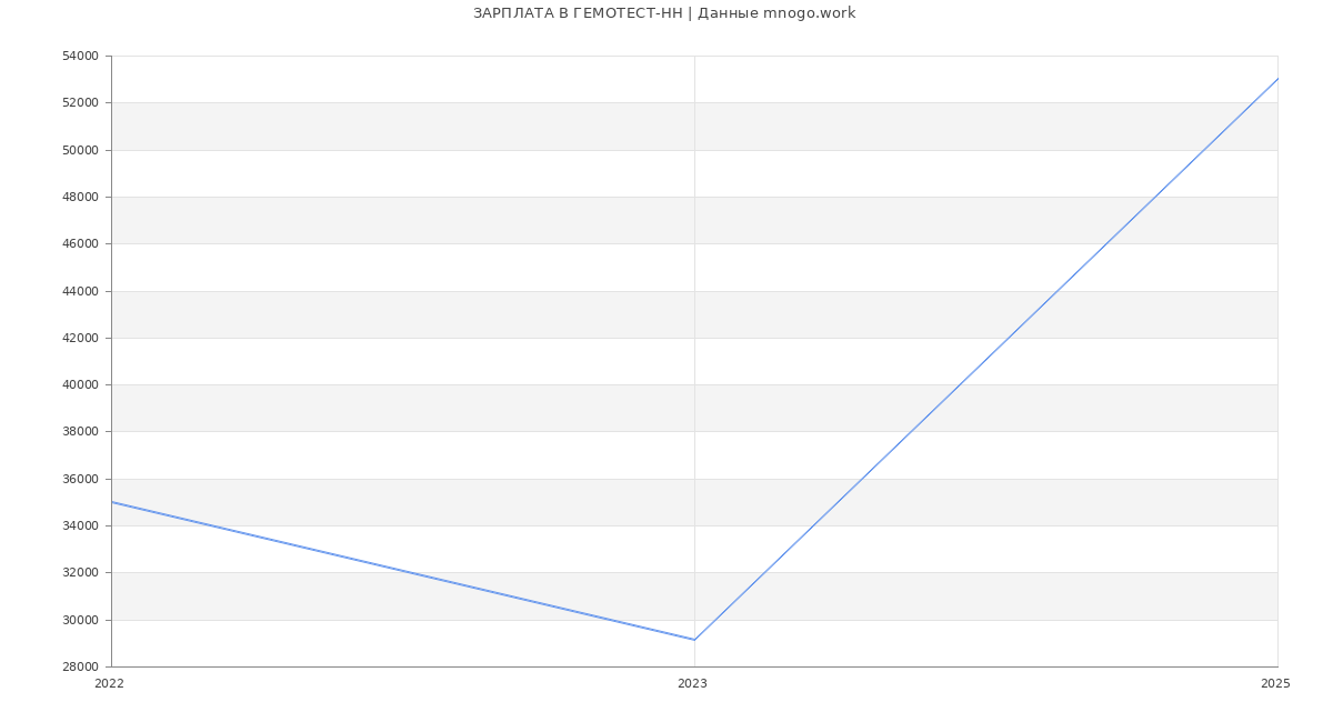 Средняя зарплата в ООО "ГЕМОТЕСТ-НН" в 2025 году составляет 53 000 руб. Это данные из вакансий за год. Это на 37 % меньше средней зарплаты по России (по версии Росстата)