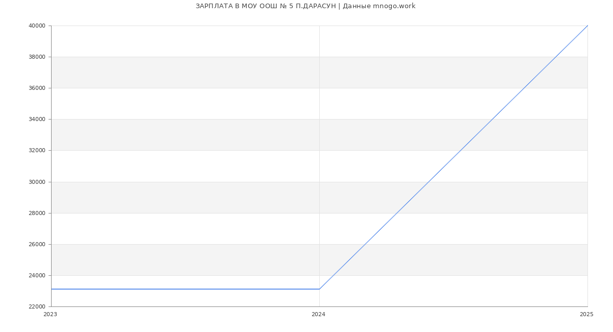 Средняя зарплата в МОУ ООШ № 5 П.ДАРАСУН в 2025 году составляет 40 000 руб. Это данные из вакансий за год. Это на 52 % меньше средней зарплаты по России (по версии Росстата)
