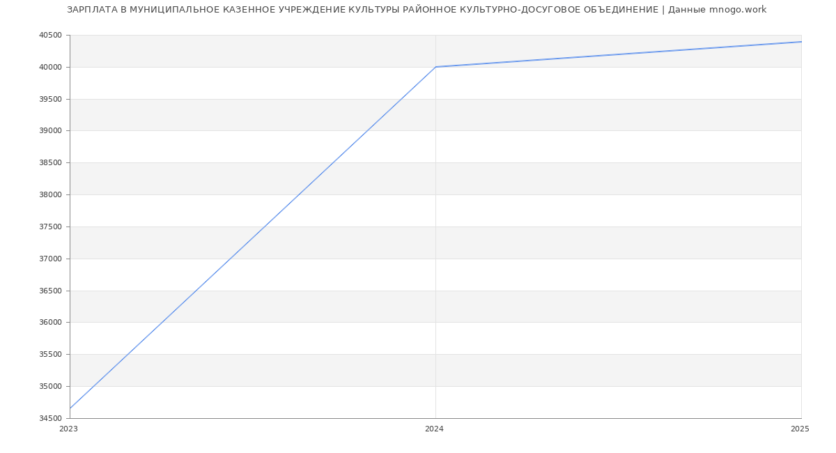 Средняя зарплата в МУНИЦИПАЛЬНОЕ КАЗЕННОЕ УЧРЕЖДЕНИЕ КУЛЬТУРЫ "РАЙОННОЕ КУЛЬТУРНО-ДОСУГОВОЕ ОБЪЕДИНЕНИЕ в 2025 году составляет 40 392 руб. Это данные из вакансий за год. Это на 52 % меньше средней зарплаты по России (по версии Росстата)