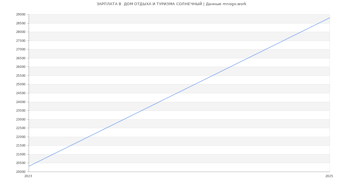 Средняя зарплата в Общество с ограниченной ответственностью Дом отдыха и туризма "Солнечный" в 2025 году составляет 28 800 руб. Это данные из вакансий за год. Это на 66 % меньше средней зарплаты по России (по версии Росстата)