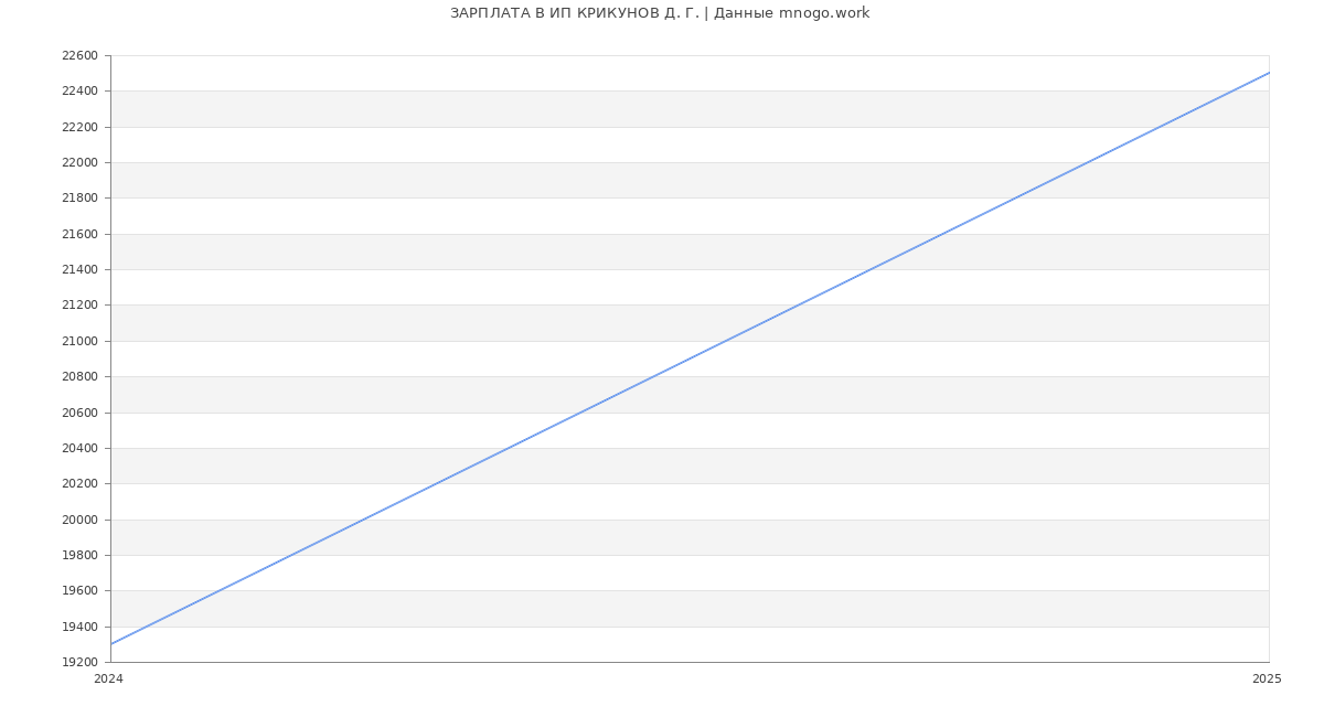 Средняя зарплата в ИП КРИКУНОВ Д. Г. в 2025 году составляет 22 500 руб. Это данные из вакансий за год. Это на 73 % меньше средней зарплаты по России (по версии Росстата)