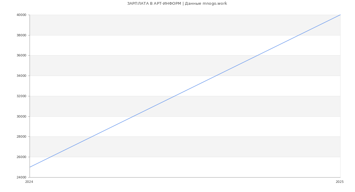 Средняя зарплата в ООО "АРТ-ИНФОРМ" в 2025 году составляет 40 000 руб. Это данные из вакансий за год. Это на 52 % меньше средней зарплаты по России (по версии Росстата)