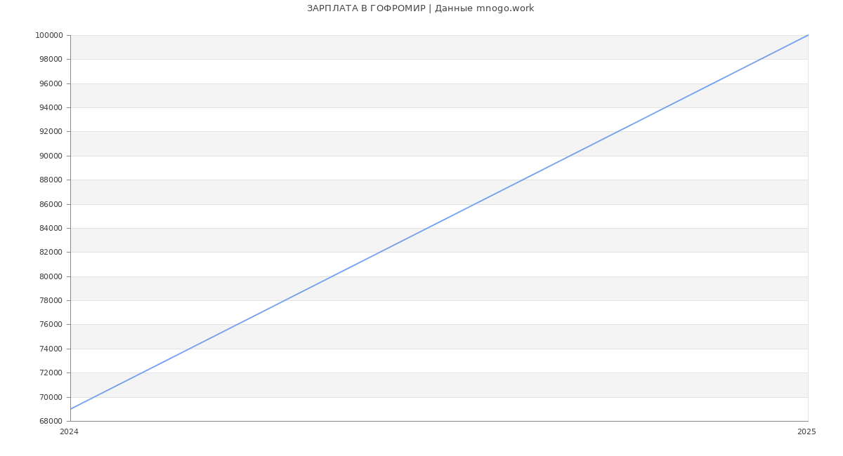 Средняя зарплата в ООО "ГОФРОМИР" в 2025 году составляет 100 000 руб. Это данные из вакансий за год. Это на 19 % меньше средней зарплаты по России (по версии Росстата)