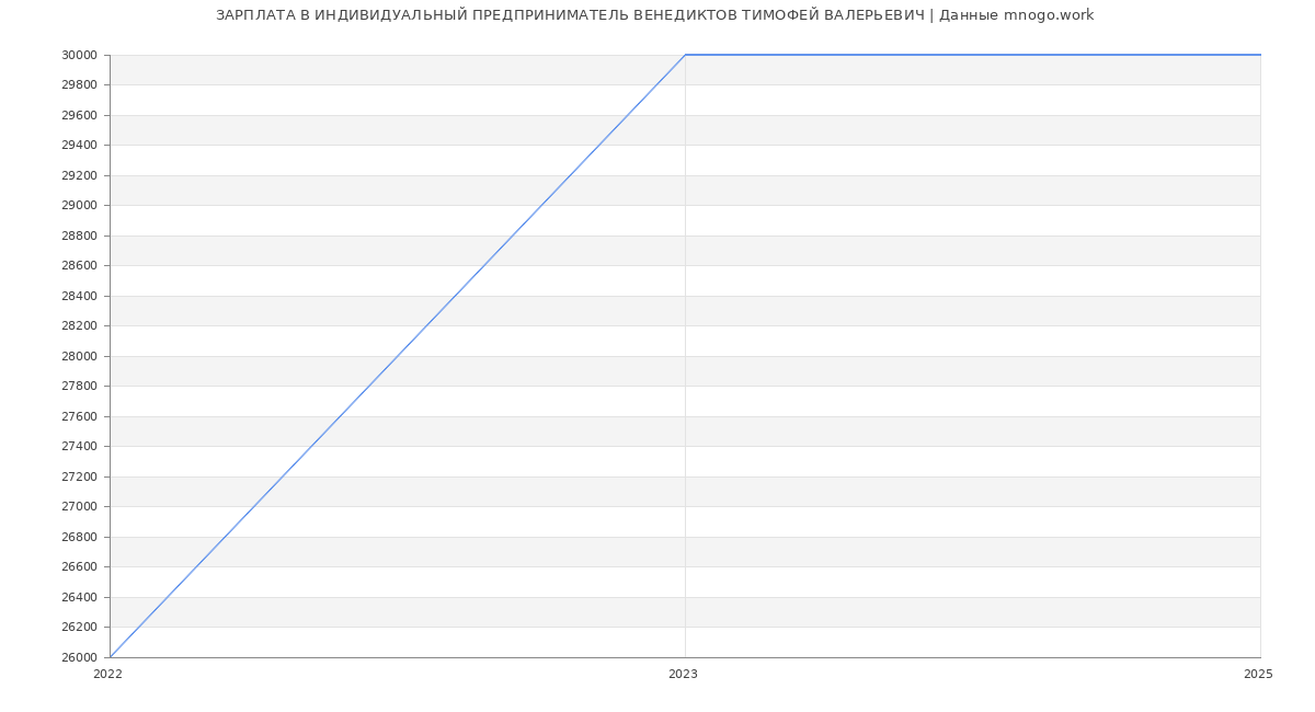 Средняя зарплата в Индивидуальный предприниматель Венедиктов Тимофей Валерьевич в 2025 году составляет 30 000 руб. Это данные из вакансий за год. Это на 64 % меньше средней зарплаты по России (по версии Росстата)