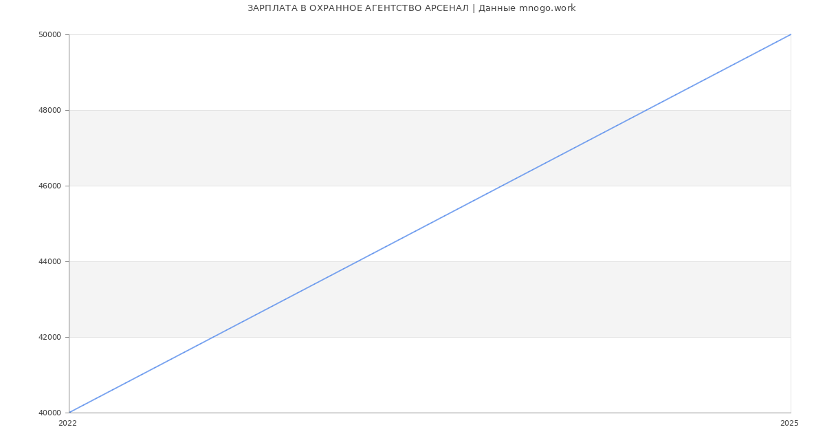 Зарплата в ОХРАННОЕ АГЕНТСТВО АРСЕНАЛ в 2025 году варьируется от 40 000 руб. в месяц на должности охранник до 50 000 руб. в месяц на должности охранник
