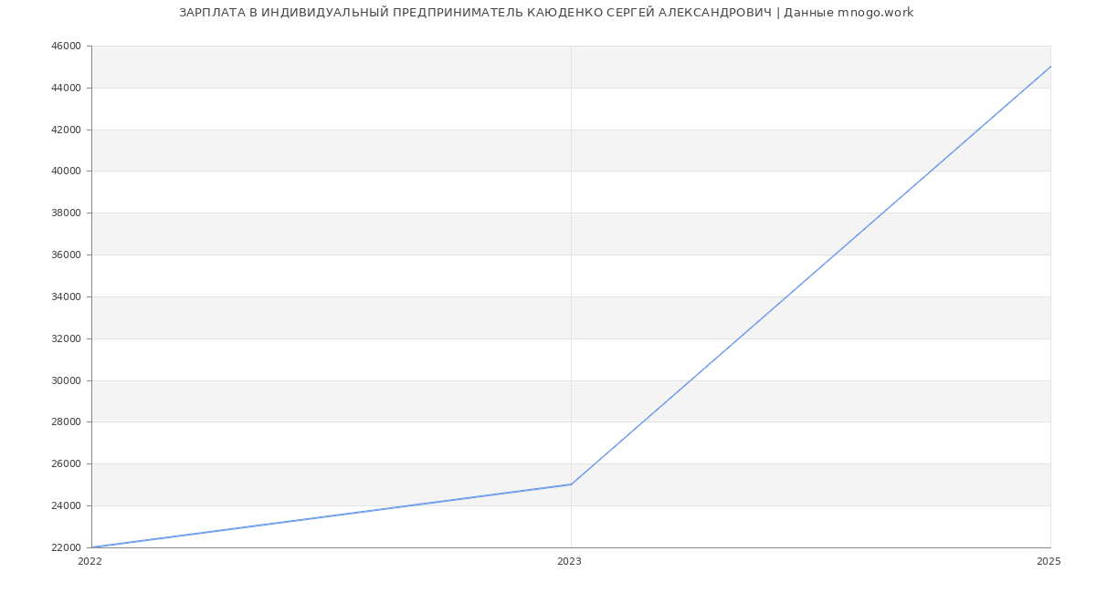 Средняя зарплата в Индивидуальный предприниматель КАЮДЕНКО СЕРГЕЙ АЛЕКСАНДРОВИЧ в 2025 году составляет 45 000 руб. Это данные из вакансий за год. Это на 46 % меньше средней зарплаты по России (по версии Росстата)