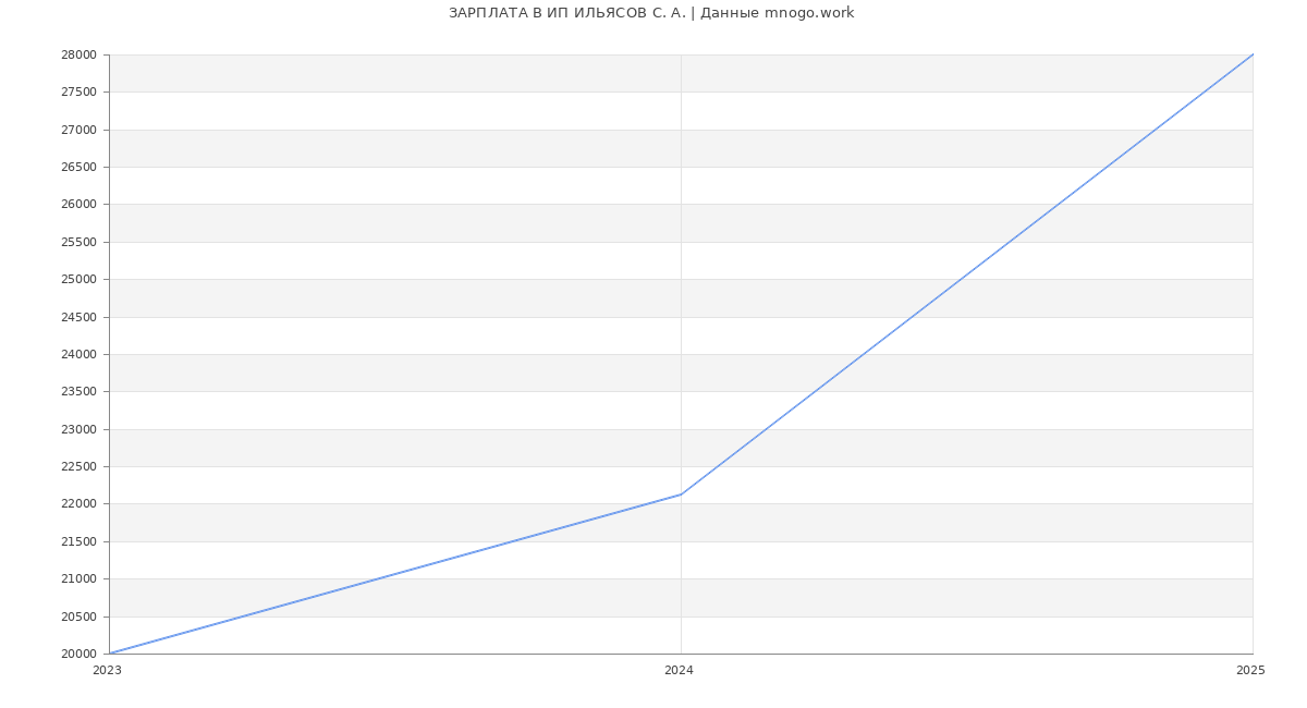 Средняя зарплата в ИП ИЛЬЯСОВ С. А. в 2025 году составляет 28 000 руб. Это данные из вакансий за год. Это на 67 % меньше средней зарплаты по России (по версии Росстата)